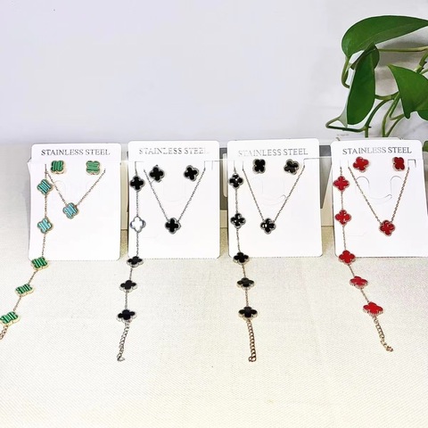 18K Gold Plating Four Leaf Flower Jewelry Set New Necklace Personality Stainless Steel Necklace for Women