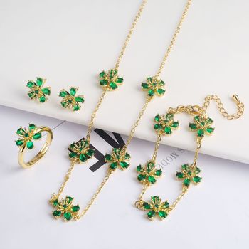 Wholesale Cheap Price Eternal Flower 5 Leaf Clover Flower Jewelry Set Gold Color Ring Earring Necklace Bracelet Set for Women