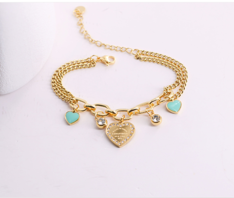 Yeni titanyum çelik lüks bilezik tasarımcı bilezikler kristal elmas kalp zincir bilezik kadınlar için güzel takı